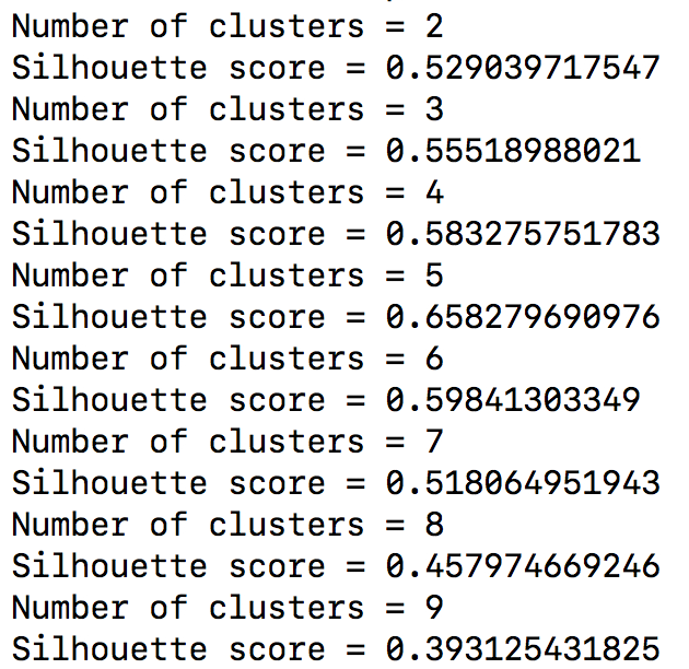 kmeans = KMeans(init='k-means++', n_clusters=i, n_init=10)